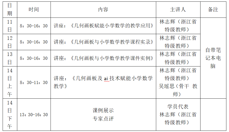 为提升教师专业素养,追寻“有学生、有数学、有技术”的数学课堂。现决定举行林志辉名师工作室“几何画板技术赋能小学数学教学”专题培训活动。