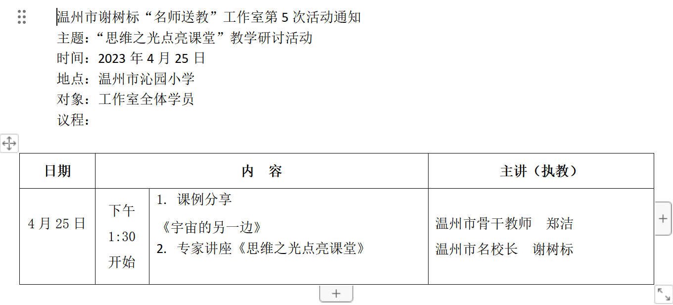 关于举行温州市谢树标“名师送教”工作室第5次活动的通知