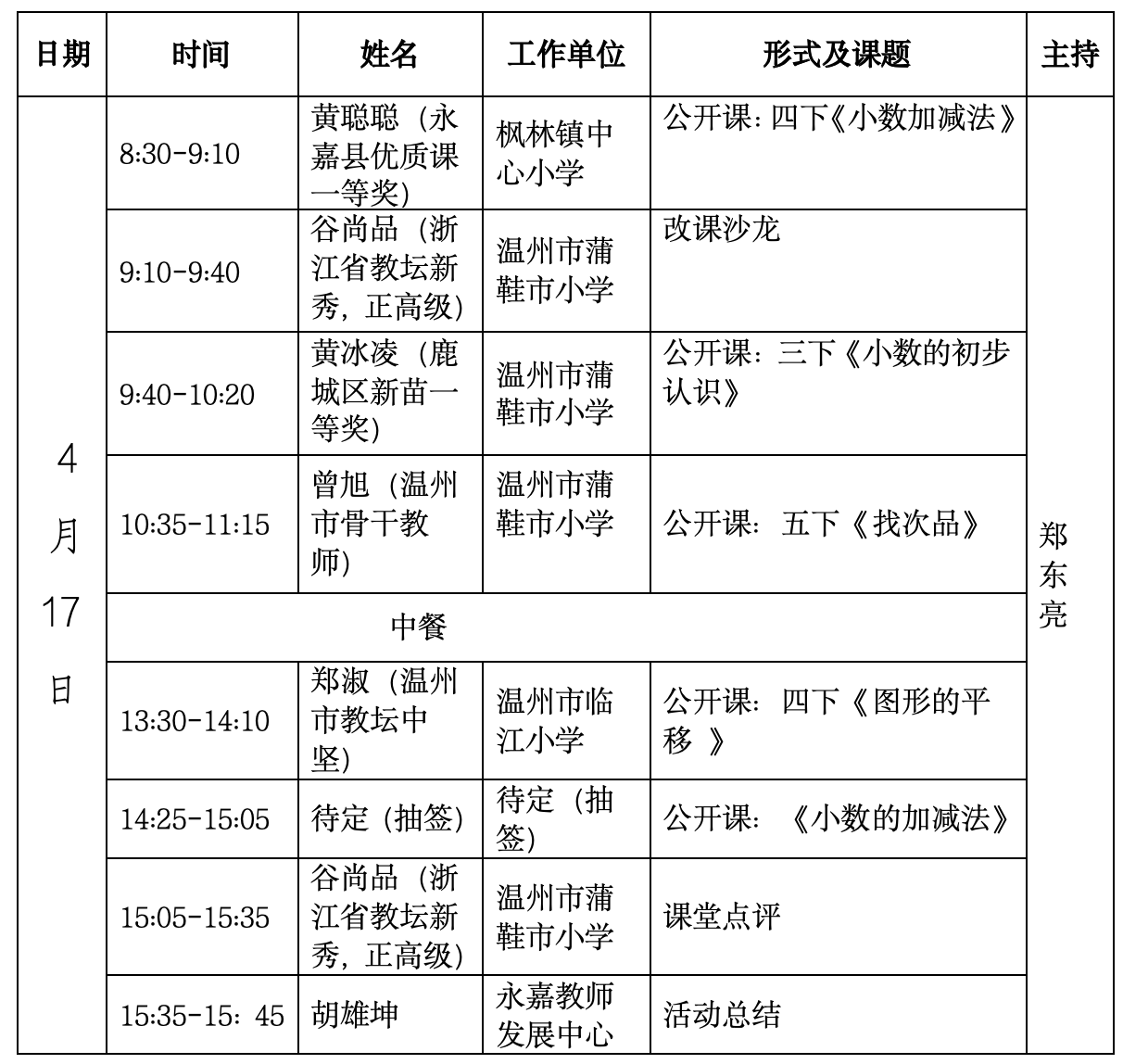 送教学员 | 郑东亮 | 永嘉县瓯北第一小学 |