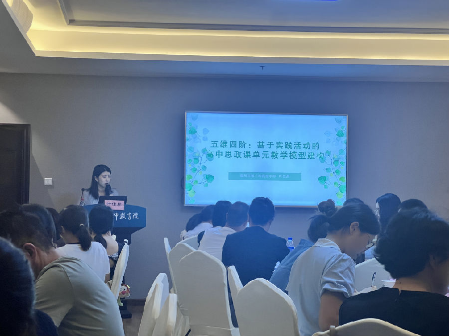 19日下午叶佳晨老师再以《四阶五维:大思政课视域下高中思想政治单元教学模型建构》为主题,介绍了自己开展实践课的心得与感悟,叶老师提出按照“活动目标——活动议题——活动形式——活动任务——活动评价”的“五维”展开综合探究实践教学框架;以“理论精讲——情景模拟——社会实践——反思提升”的“四阶”构建单元教学模型,令工作室成员受益匪浅。