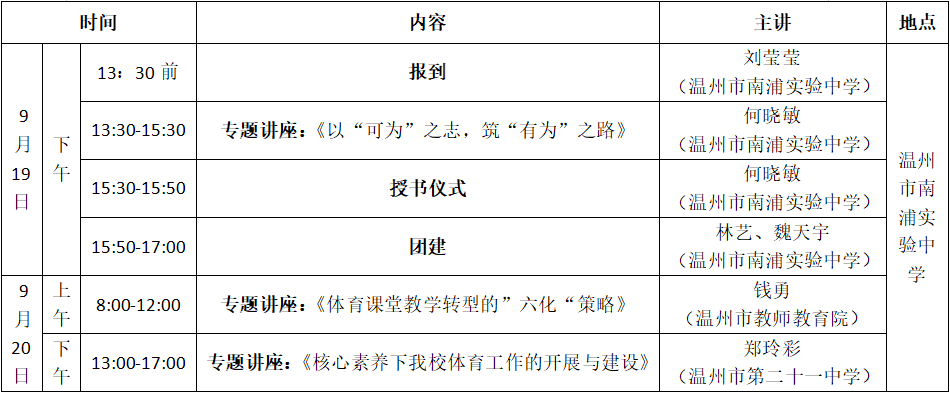 关于举行温州市何晓敏体育“名师送教”工作室第14次活动的通知