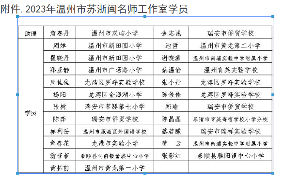 温州市苏浙闽名师工作室学员、泰顺县苏浙闽名师工作室学员